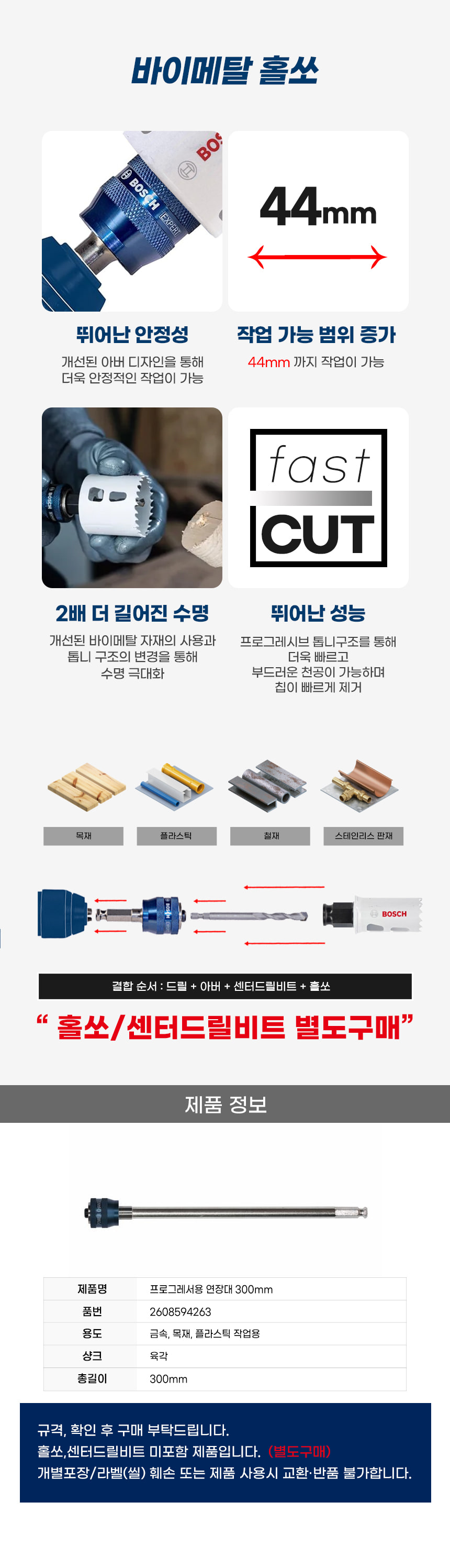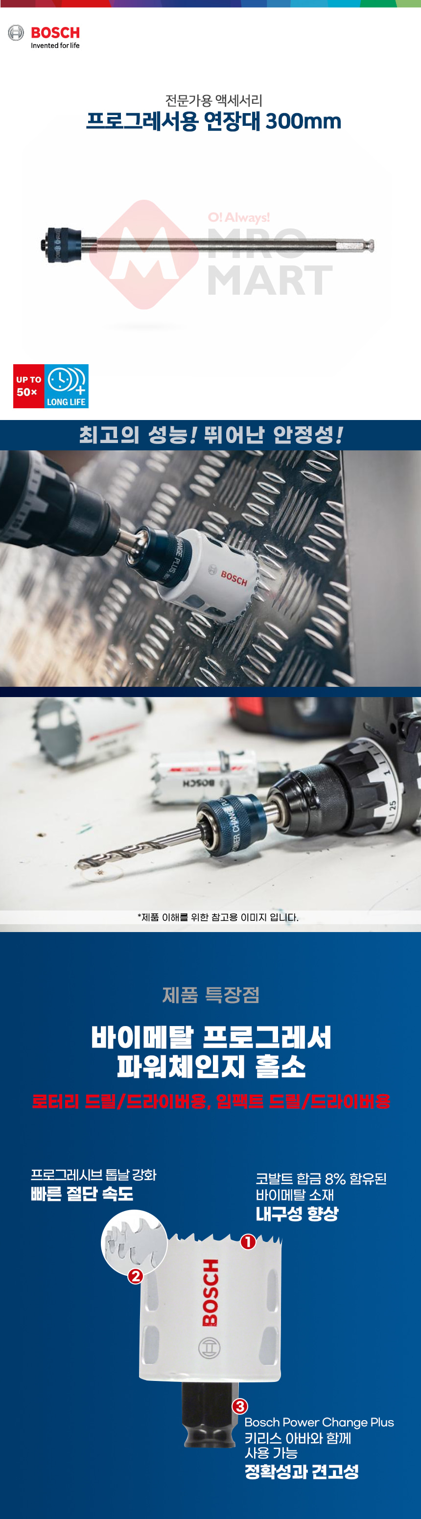보쉬 바이메탈 프로그레서 전용 연장대 300mm 2608594263 홀쏘 아바 악세사리