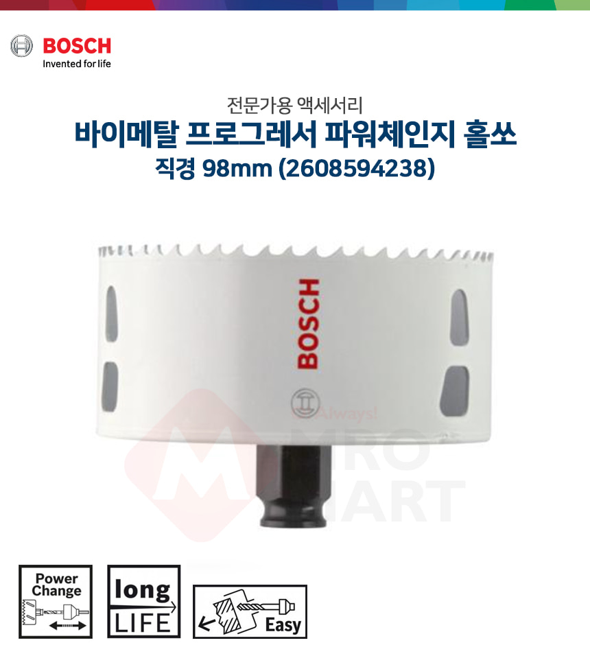 보쉬 바이메탈 프로그레서 파워체인지 홀쏘 98mm 2608594238 홀소 홀커터 타공 카타 날 천공 목재 철재 스텐