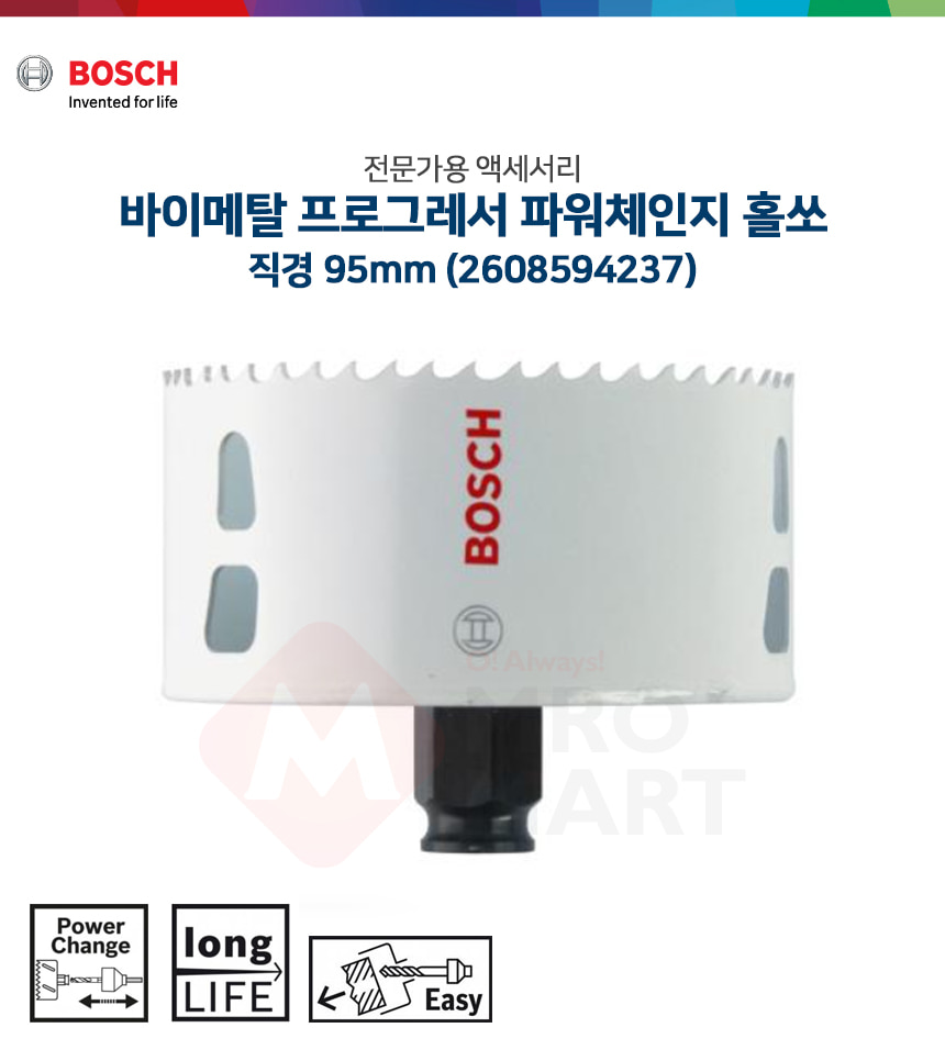 보쉬 바이메탈 프로그레서 파워체인지 홀쏘 95mm 2608594237 홀소 홀커터 타공 카타 날 천공 목재 철재 스텐