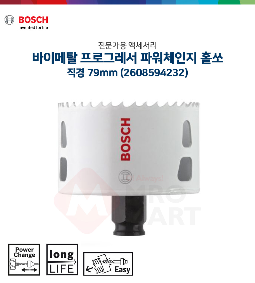 보쉬 바이메탈 프로그레서 파워체인지 홀쏘 79mm 2608594232 홀소 홀커터 타공 카타 날 천공 목재 철재 스텐