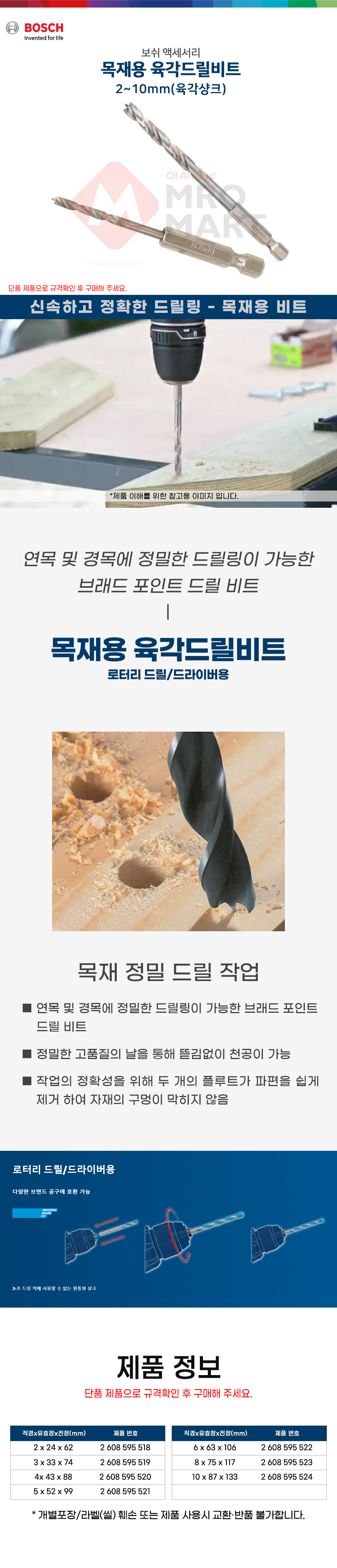 보쉬 목재용 육각 드릴 비트 5x99 1개입 2608595521 드릴날 기리 목재 나무