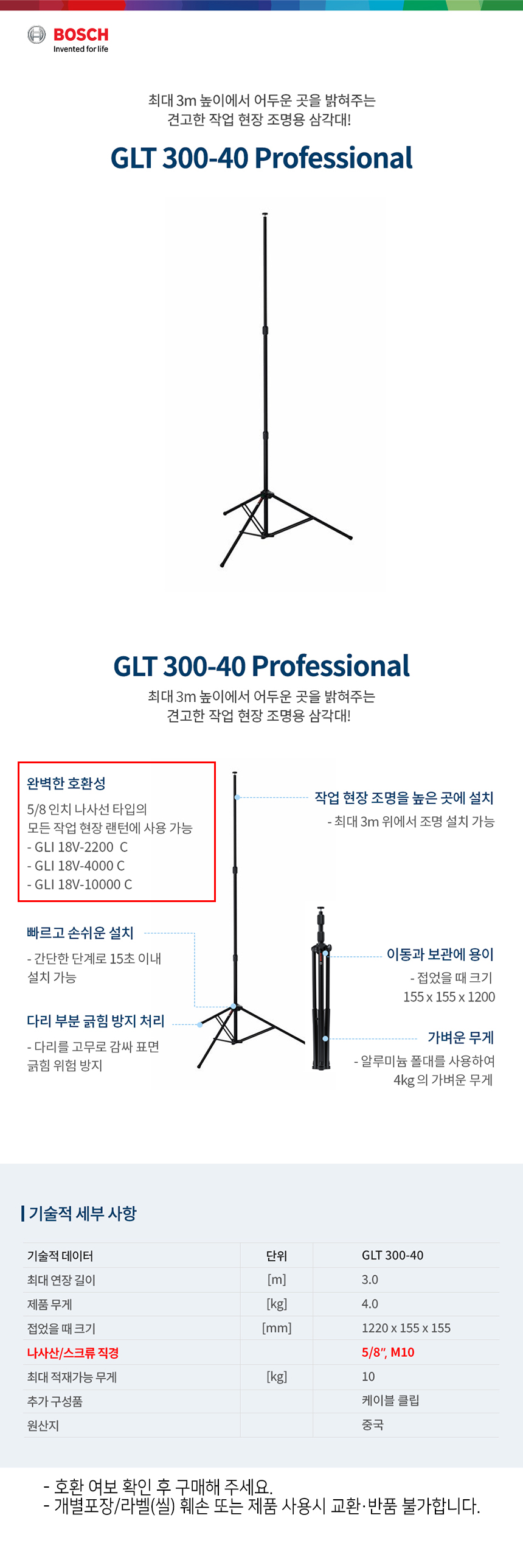 보쉬 GLT 300-40 조명 삼각대 06188000MT 작업등 조명 랜턴 길이3M GLI 호환