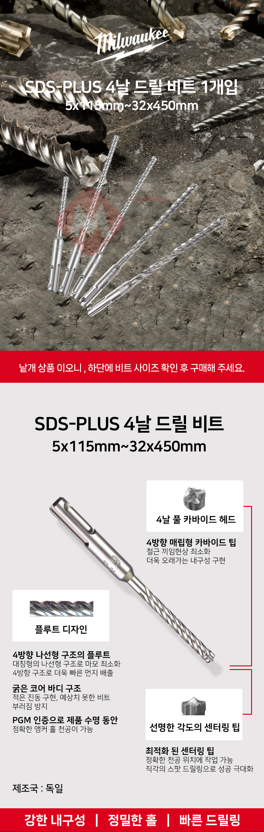 밀워키 SDS PLUS 4날 드릴 비트 1개입 4932352013 6X215MM GEN2 콘크리트 드릴날 기리 함마