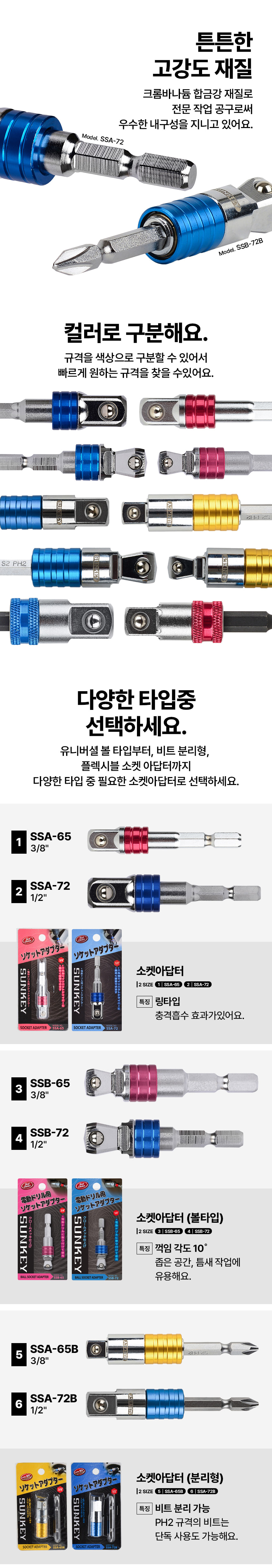 썬키 SSB-65B 소켓 아답터 3/8인치 볼타입 분리형 PH2 비트 육각 임팩 복스 어댑터 복스알 드릴 변환