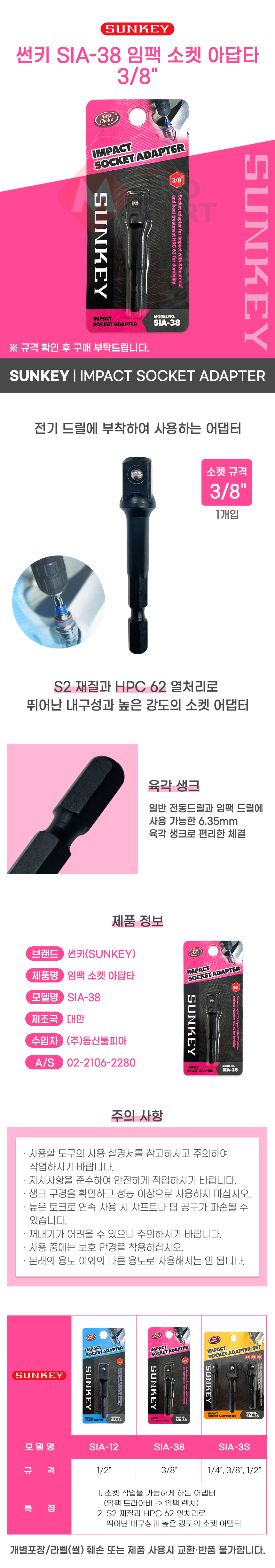 썬키 3/8인치 임팩 소켓 아답타 SIA-38 육각 생크 어댑터 어뎁터 아답터 비트 드릴