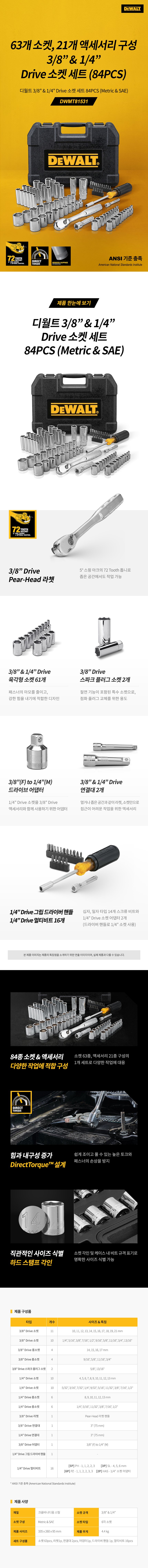 디월트 3/8인치 1/4인치 드라이버 소켓 세트 84PCS DWMT81531
