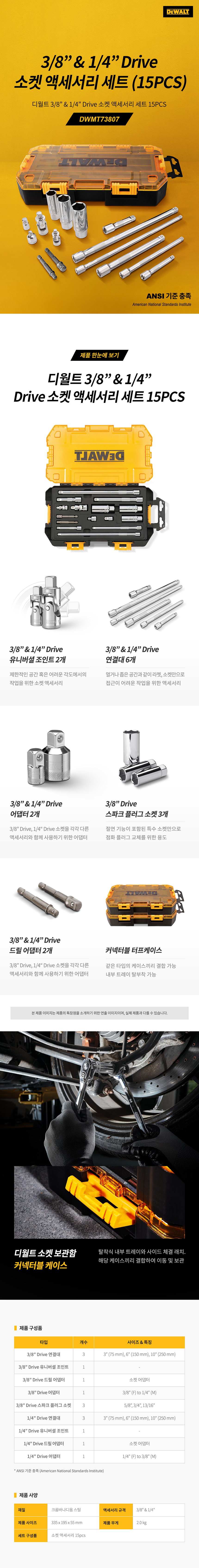 디월트 3/8인치 1/4인치 드라이브 소켓 액세서리 세트 15PCS DWMT73807