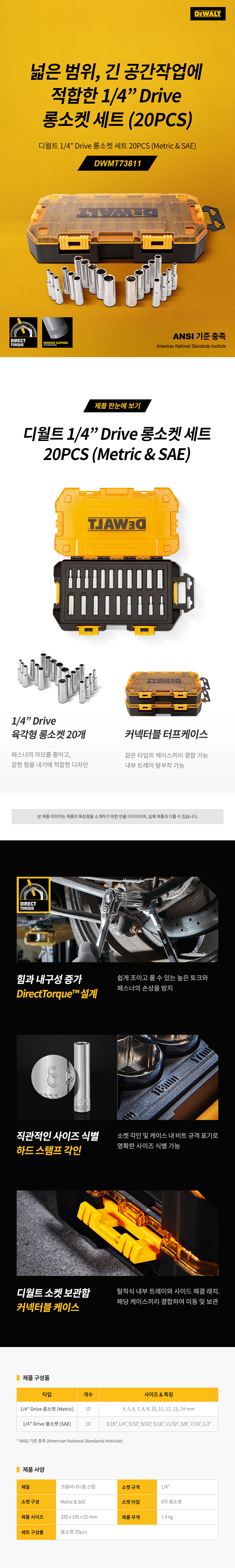 디월트 1/4인치 Drive 롱 소켓 세트 20PCS DWMT73811 육각 복스대 복스알 라쳇 복스 렌치