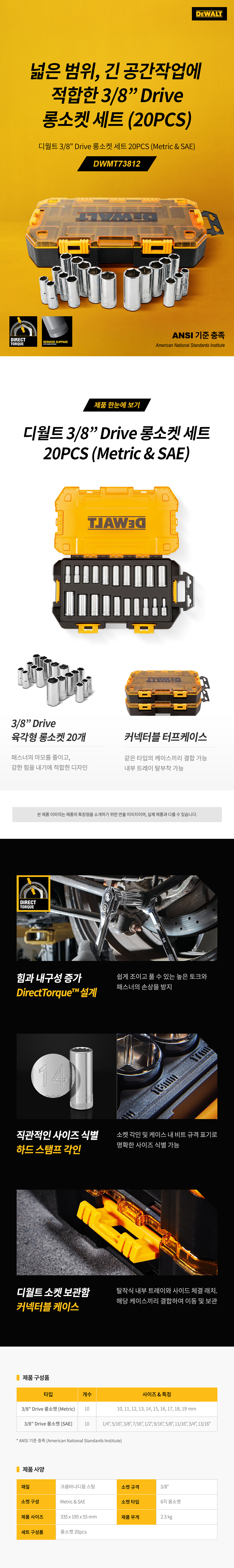 디월트 3/8인치 Drive 롱 소켓 세트 20PCS DWMT73812 육각 복스대 복스알 라쳇 복스 렌치