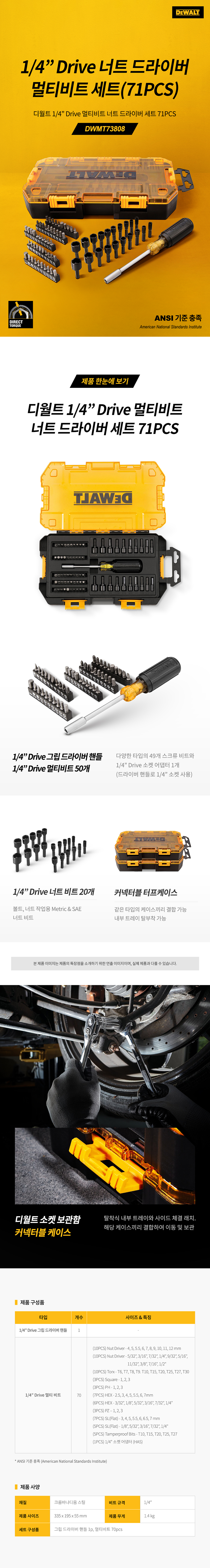 디월트 1/4인치 Drive 멀티 비트 너트 드라이버 세트 71PCS DWMT73808