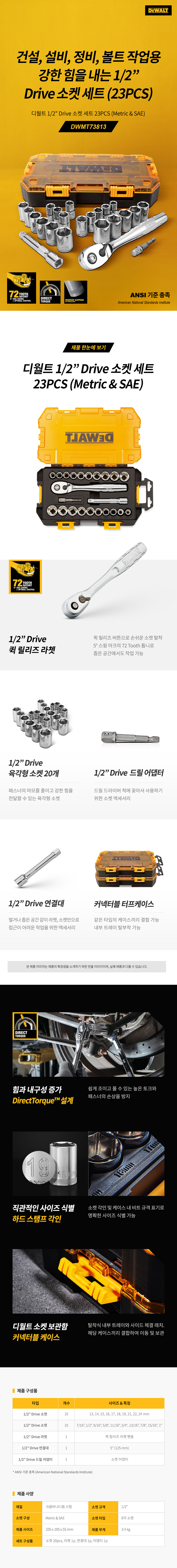 디월트 1/2인치 Drive 소켓 세트 23PCS DWMT73813 육각 복스대 복스알 라쳇 복스 렌치