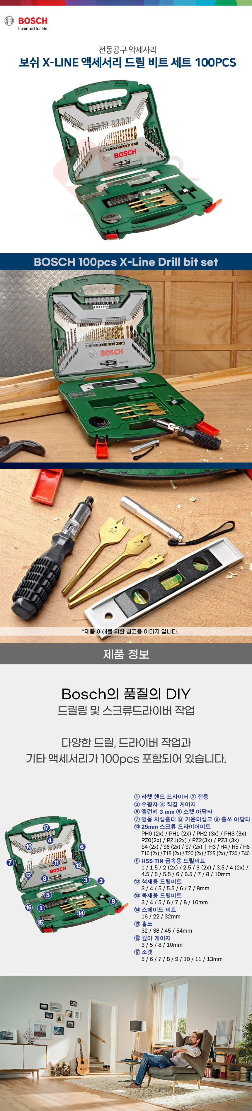 보쉬 X-LINE 드릴 스크류 드라이버 비트 세트 100pcs 2607019330 석재 목재 스페이드 소켓 수평자