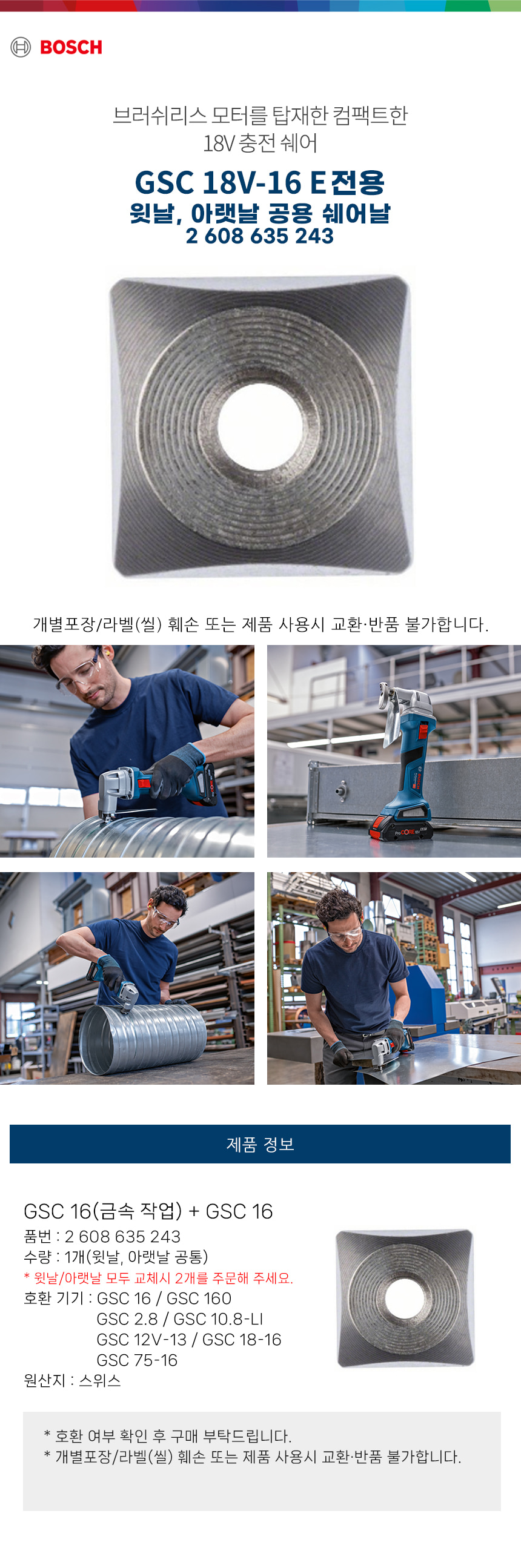 보쉬 윗날 아랫날 공용 교체 쉐어날 2608635243 GSC16 GSC75-16 GSC18V-16 전용 쉐어 교체날