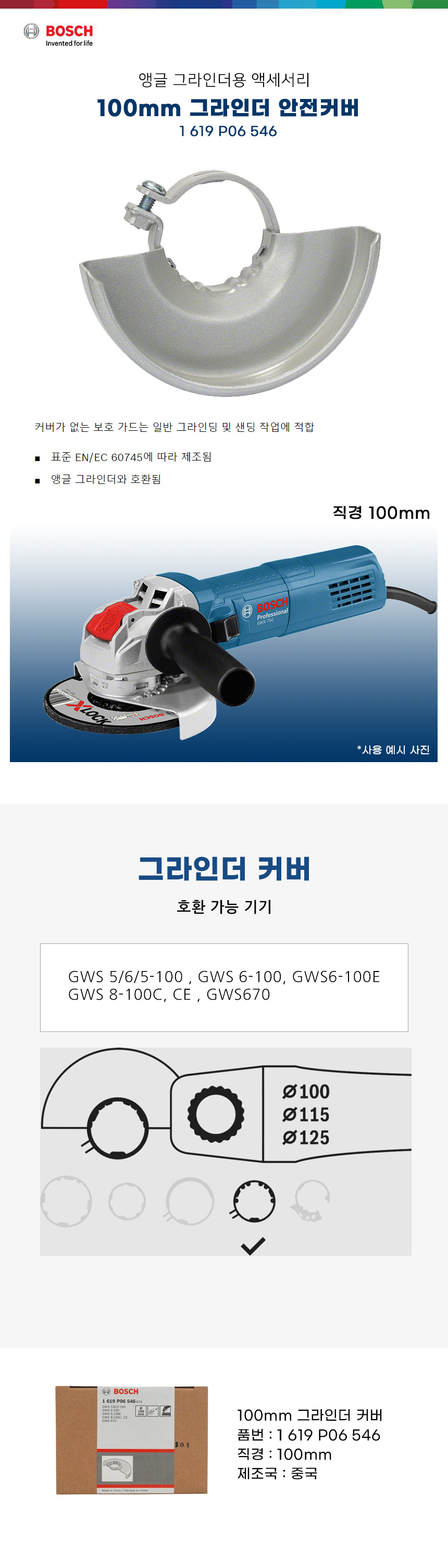 보쉬 4인치 그라인더 안전 커버 1619P06546 카바 GWS 6-100 8-100 670