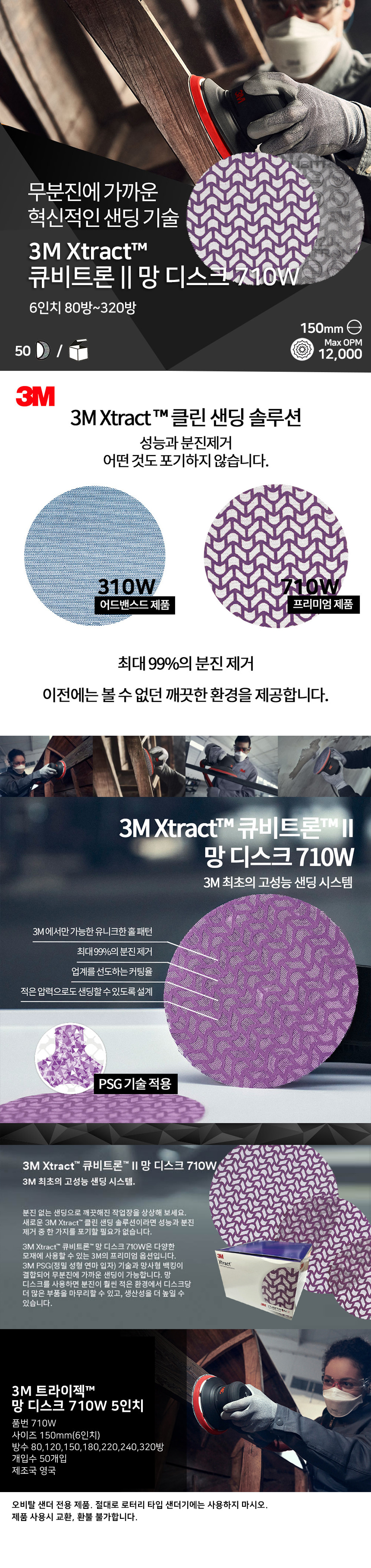 3M 큐비트론 II 6인치 망 디스크 710W 50개입 원형 사포 페파 페이퍼 연마 빼빠 샌딩 오비탈 샌더