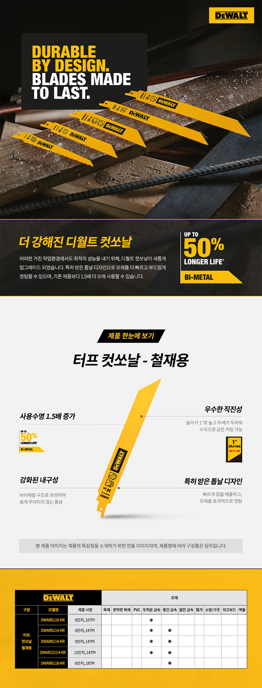 디월트 터프 컷쏘날 컷소날 톱날 절단 DWAR6110 6인치 5개입 10TPI 금속