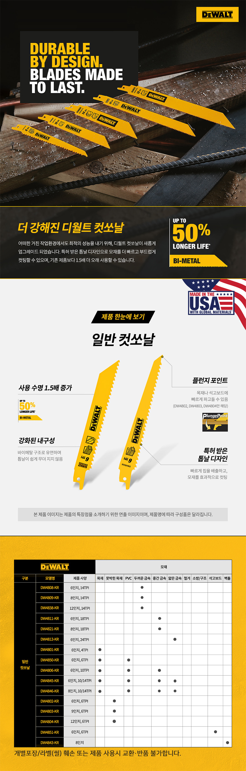 디월트 일반 컷쏘날 컷소날 톱날 절단 DW4803 9인치 5입 6TPI 못박힌 목재
