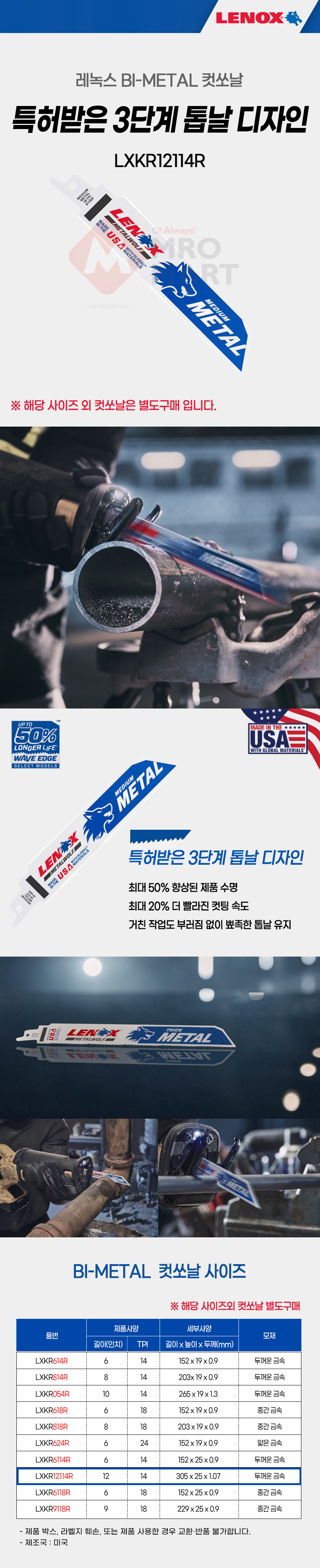 레녹스 바이메탈 컷쏘날 LXKR12114R 12인치 14TPI 두꺼운 금속 절단용 5pcs