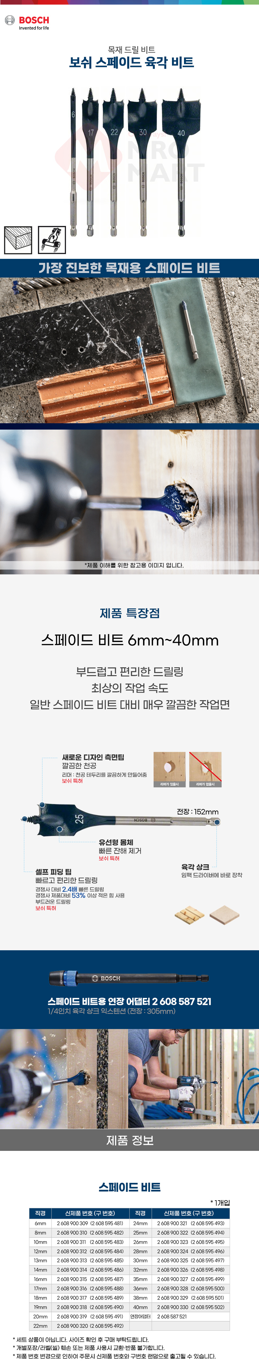 보쉬 스페이드 비트 19mm 2608900318 목공 목재 나비 드릴 비트 기리 육각샹크