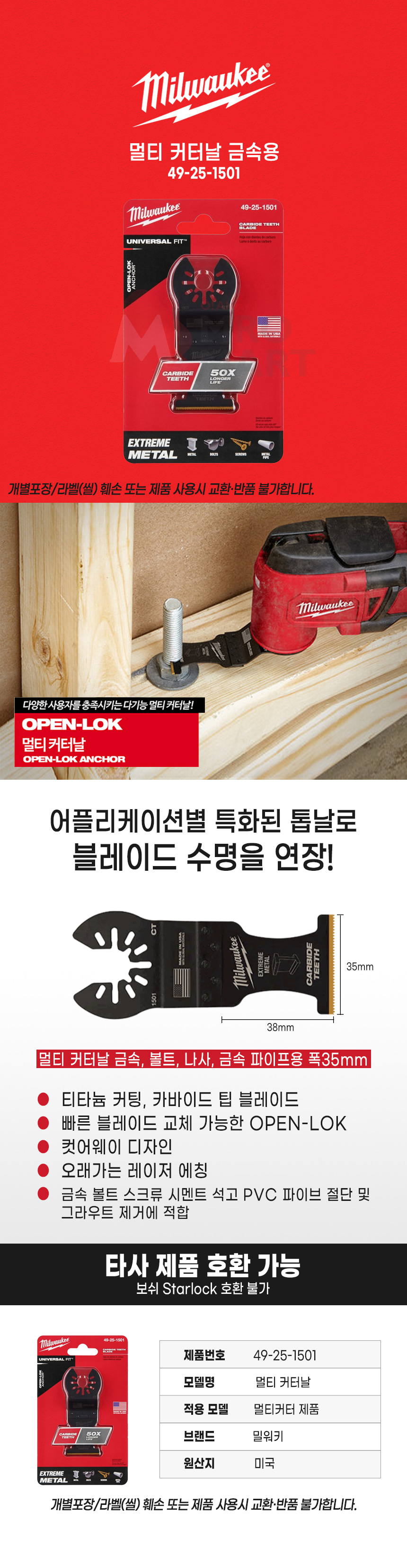 밀워키 멀티 커터날 49-25-1501 금속 볼트 나사 PVC 파이프 절단 커팅 컷팅