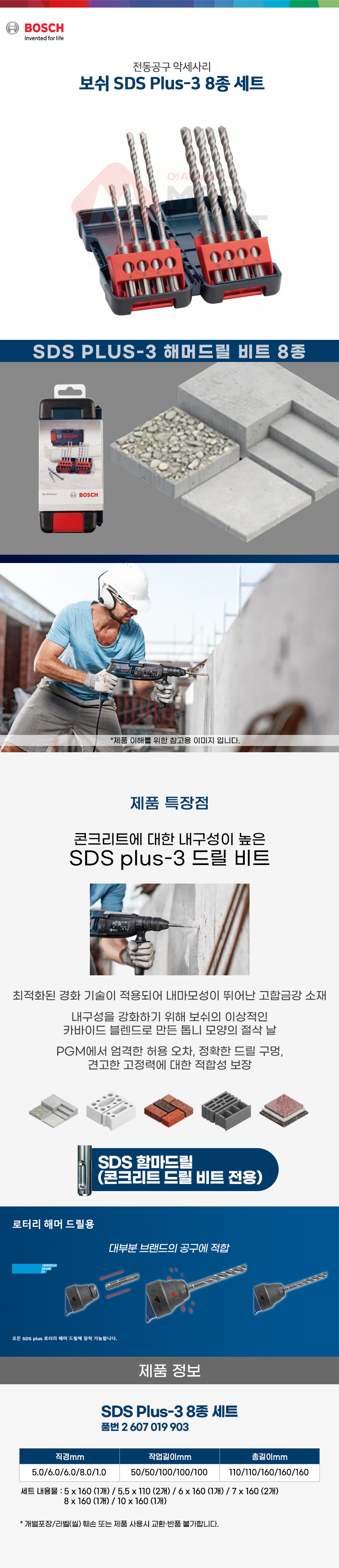 보쉬 SDS Plus-3 해머 함마 햄머 드릴 비트 8종 세트 2607019903 석재 콘크리트