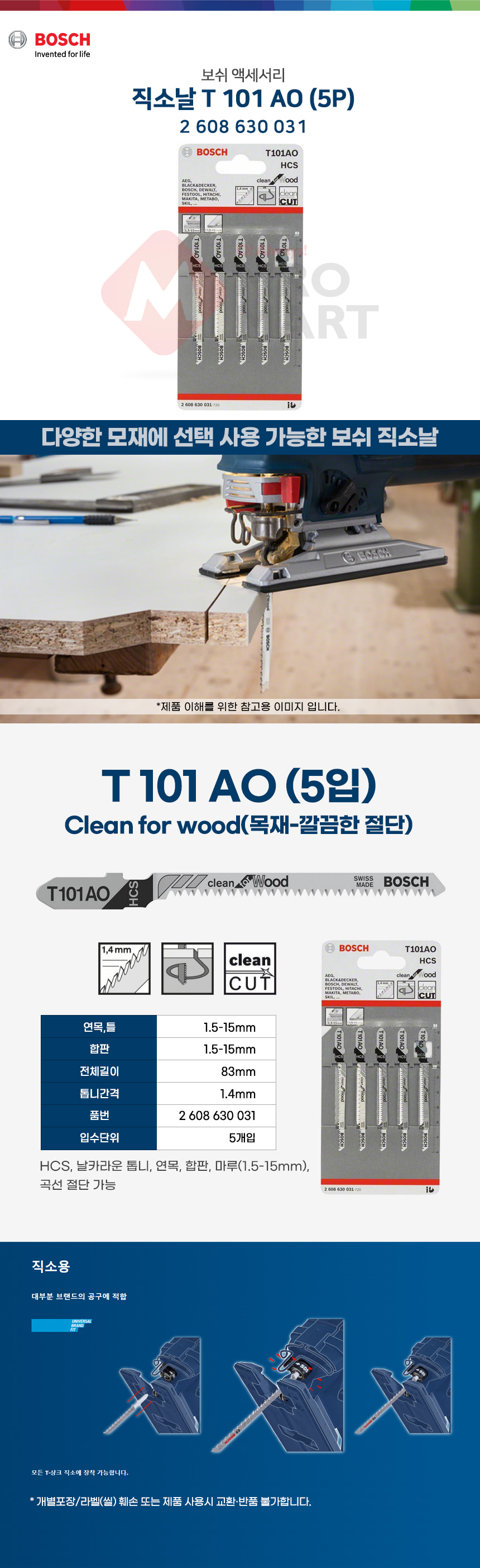 보쉬 목재용 직소날 직쏘날 T101AO 5개입 2608630031