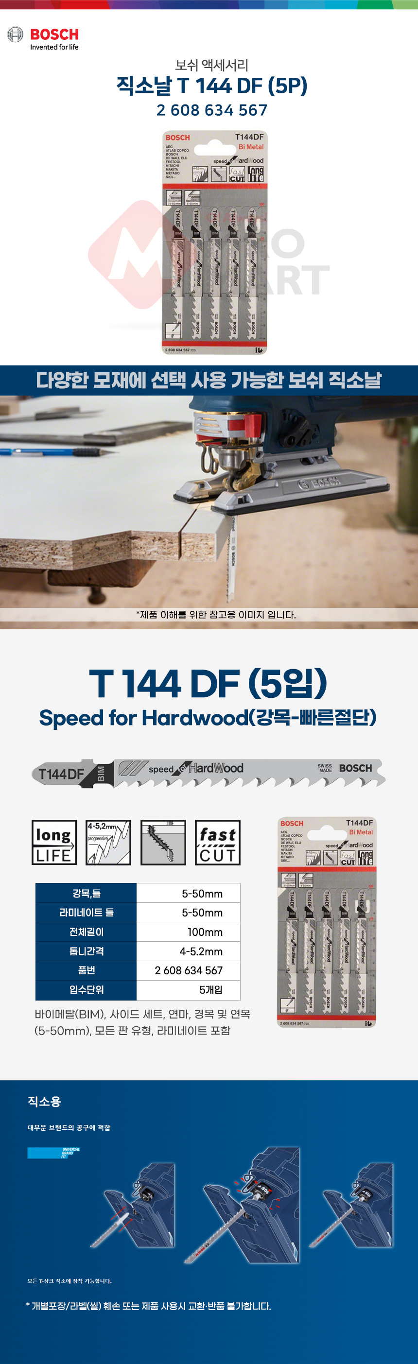 보쉬 목재용 직소날 직쏘날 T144DF 5개입 2608634567