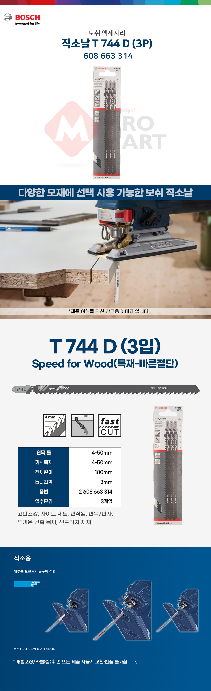 보쉬 목재용 직소날 직쏘날 T744D 3개입 2608663314