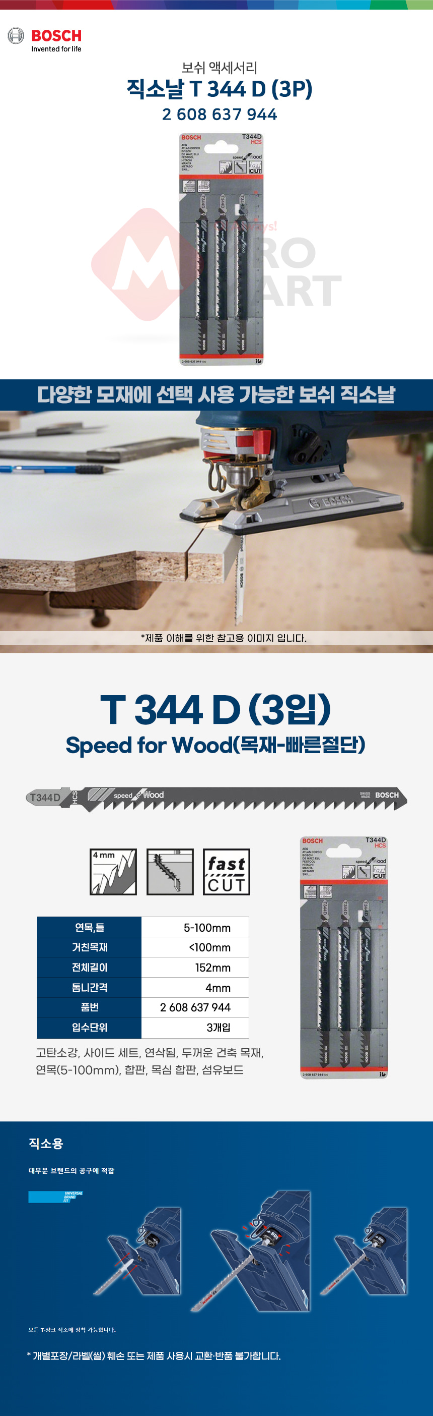 보쉬 목재용 직소날 직쏘날 T344D 3개입 2608637944