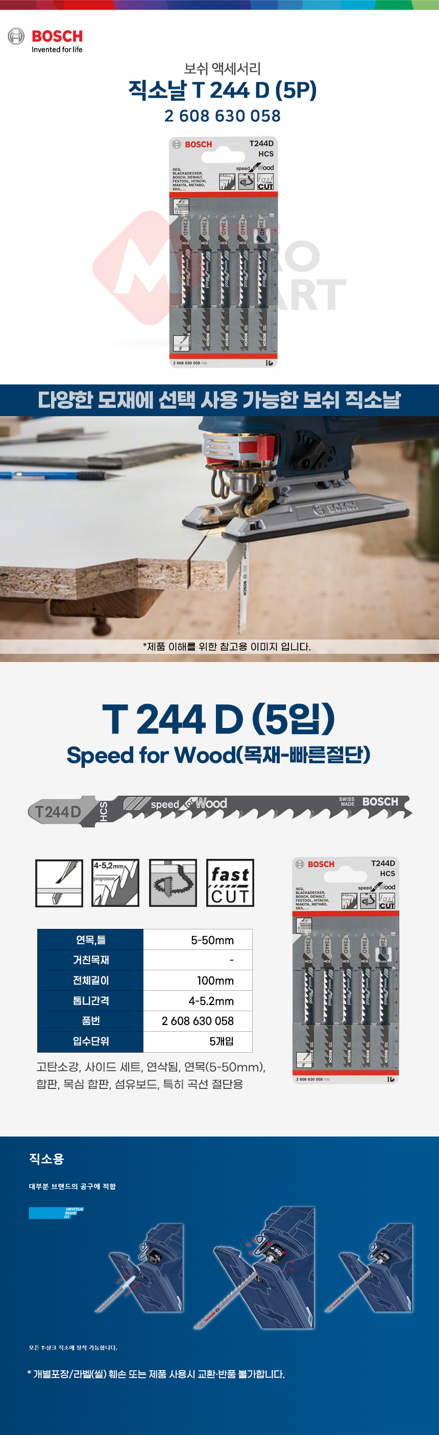 보쉬 목재용 직소날 직쏘날 T244D 5개입 2608630058