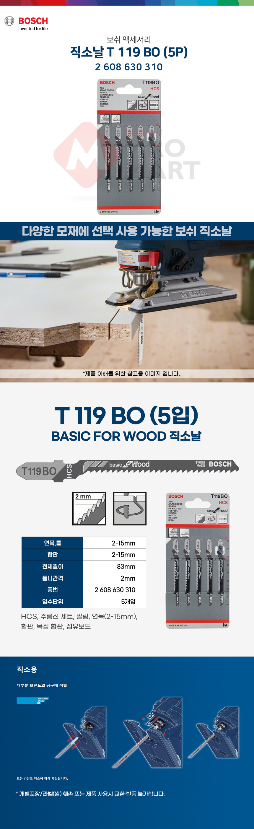보쉬 목재용 직소날 직쏘날 T119BO 5개입 2608630310