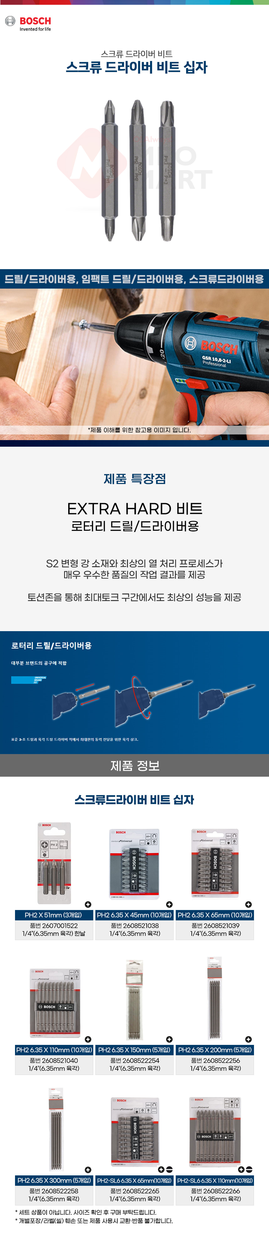 보쉬 십자 스크류 드라이버 비트 PH2 51mm 3입 2607001522