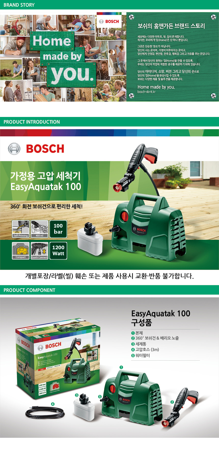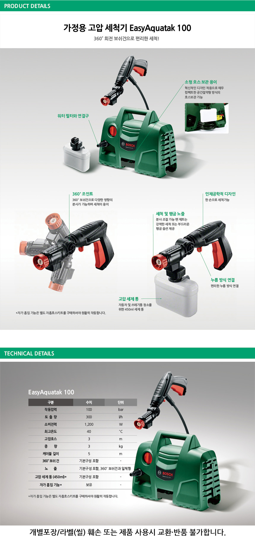 보쉬 EasyAquatak 100 가든툴 고압 세척기 06008A7EB0 세차 물 청소