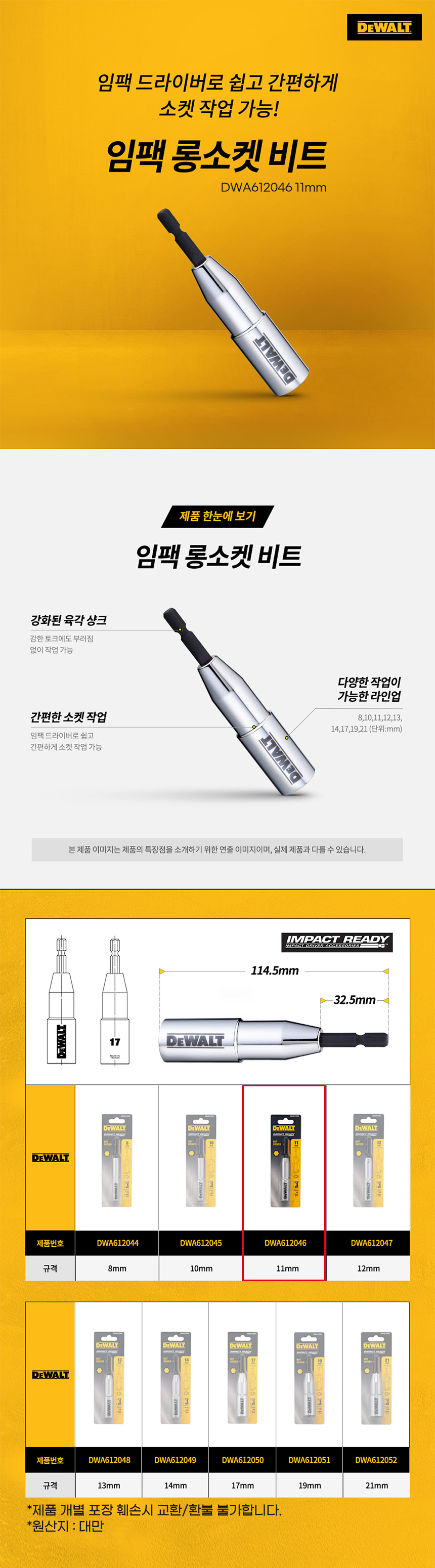 디월트 임팩 롱소켓 비트 DWA612046 11mm