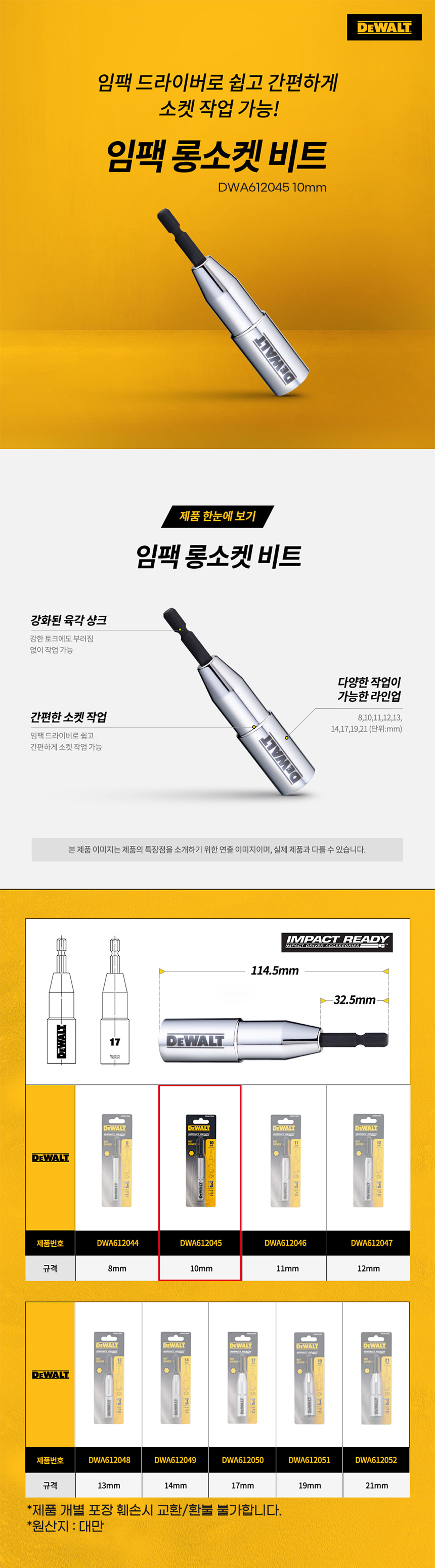 디월트 임팩 롱소켓 비트 DWA612045 10mm