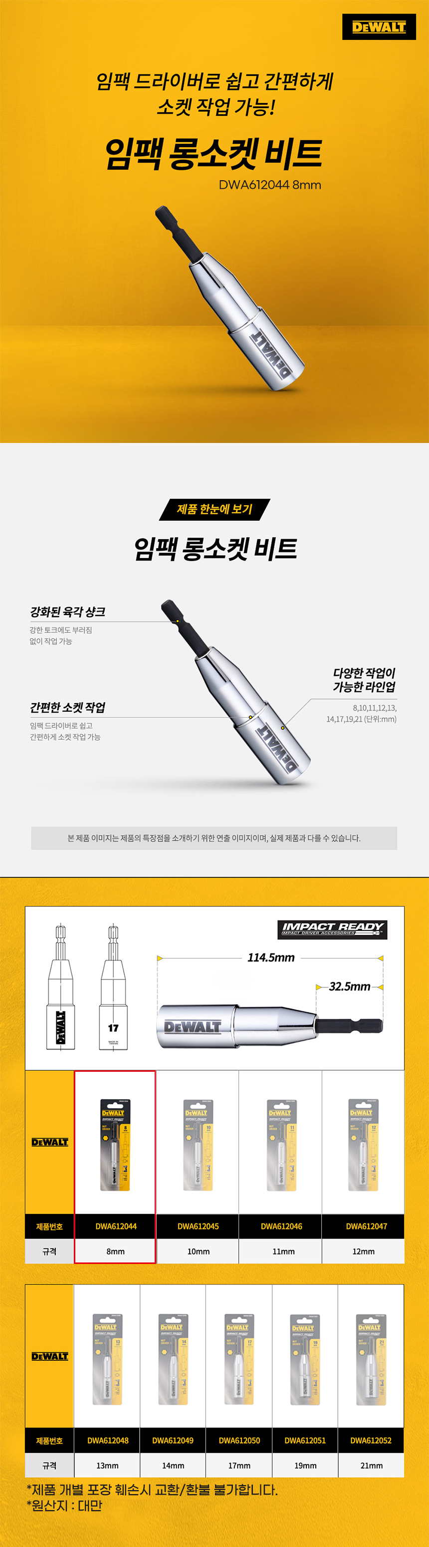 디월트 임팩 롱소켓 비트 DWA612044 8mm