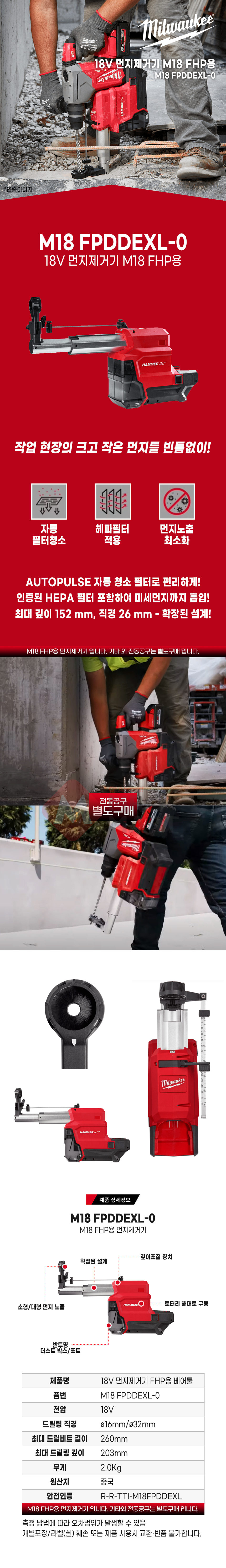 밀워키 M18 FPDDEXL-0 18V 먼지제거기 FHP용 베어툴