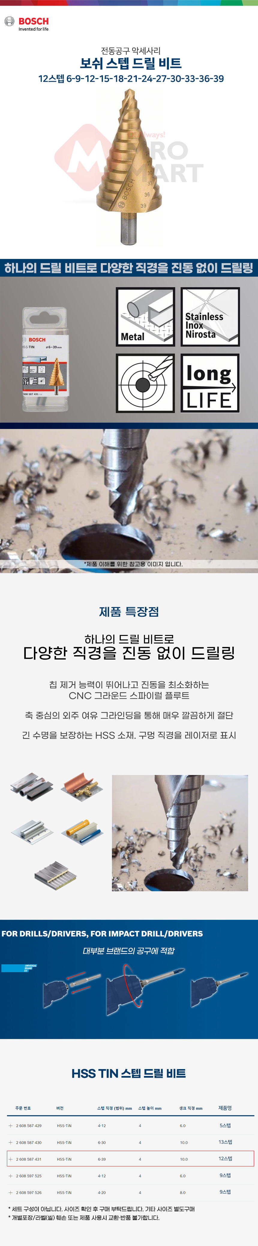 보쉬 스텝 드릴 비트 2608587431 12스텝 6-39mm
