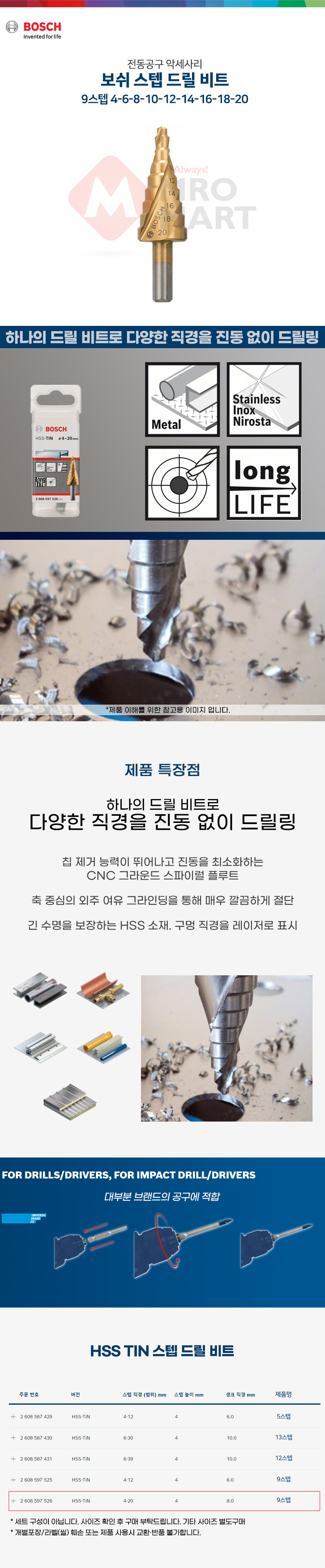 보쉬 스텝 드릴 비트 2608597526 9스텝 4-20mm