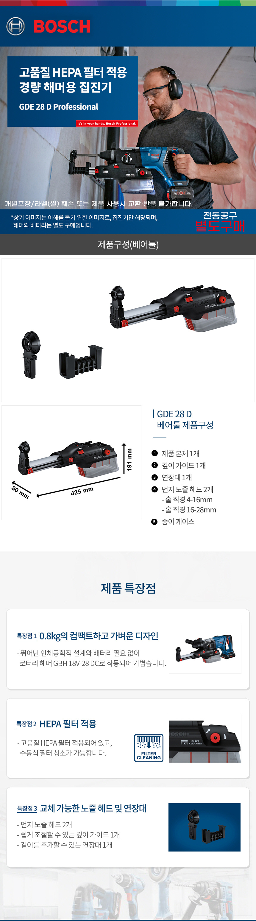 보쉬 GDE 28 D 경량 해머용 집진기 1600A021CZ