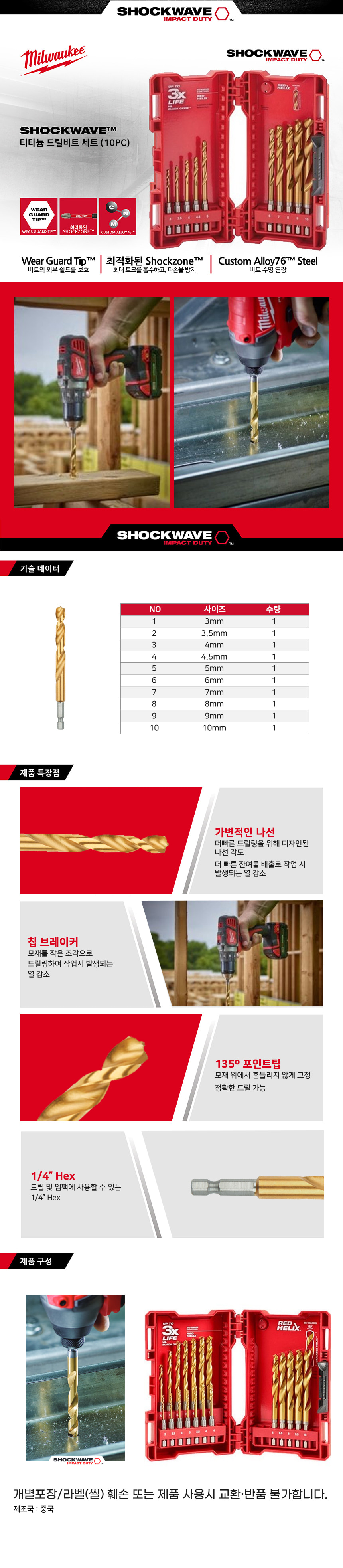 밀워키 48-89-4859 SHOCKWAVE 티타늄 드릴비트 세트 10PC