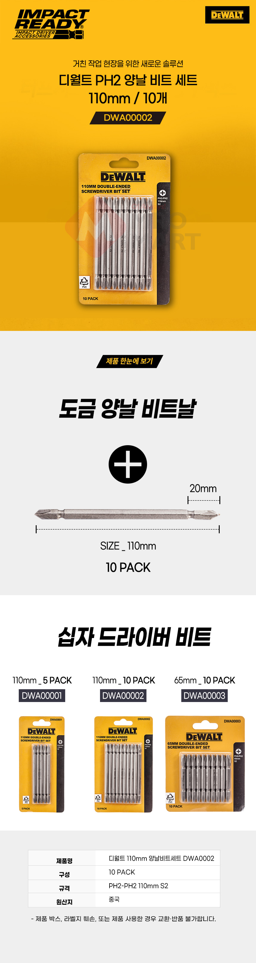 디월트 PH2 양날 비트 세트 110mm 10pack DWA00002