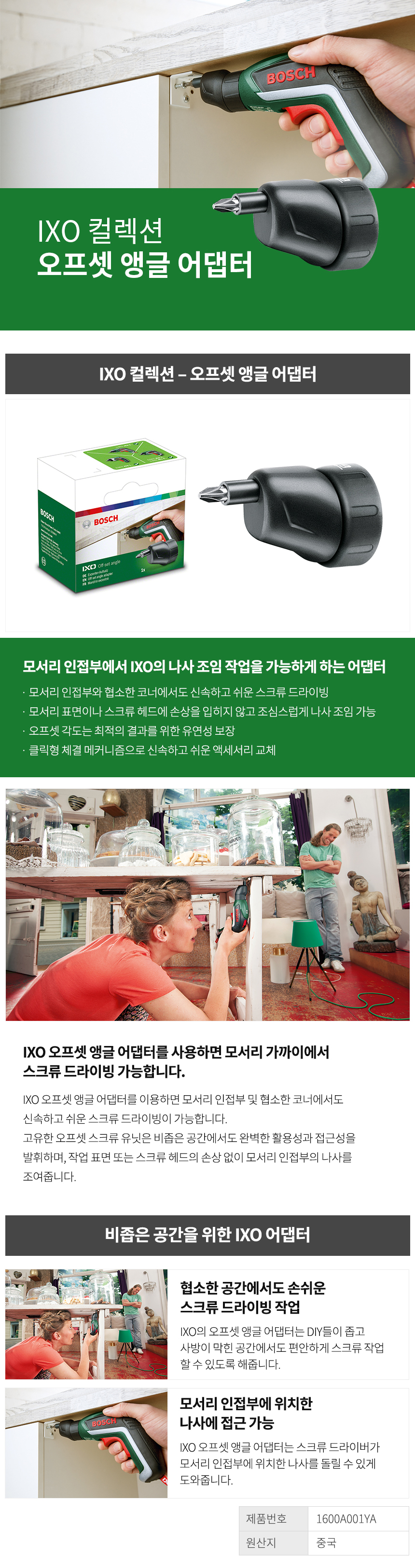 보쉬 IXO 컬렉션 오프셋 앵글 어댑터 1600A001YA