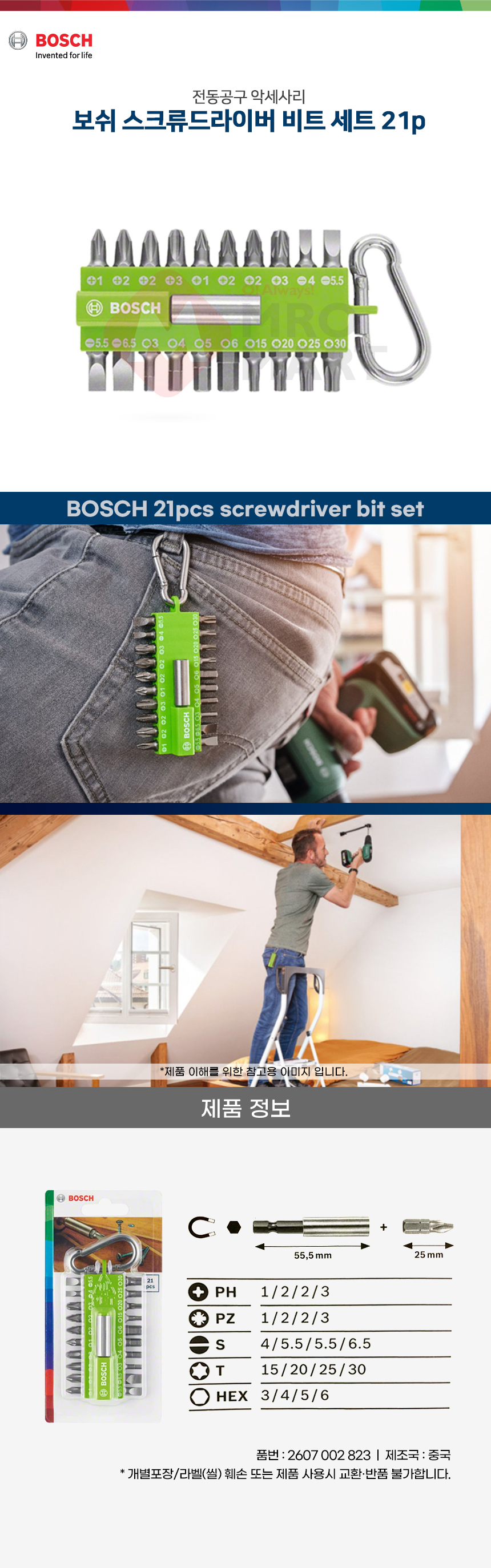 보쉬 스크류 드라이버 비트 세트 21pcs 2607002823 십자 일자 육각