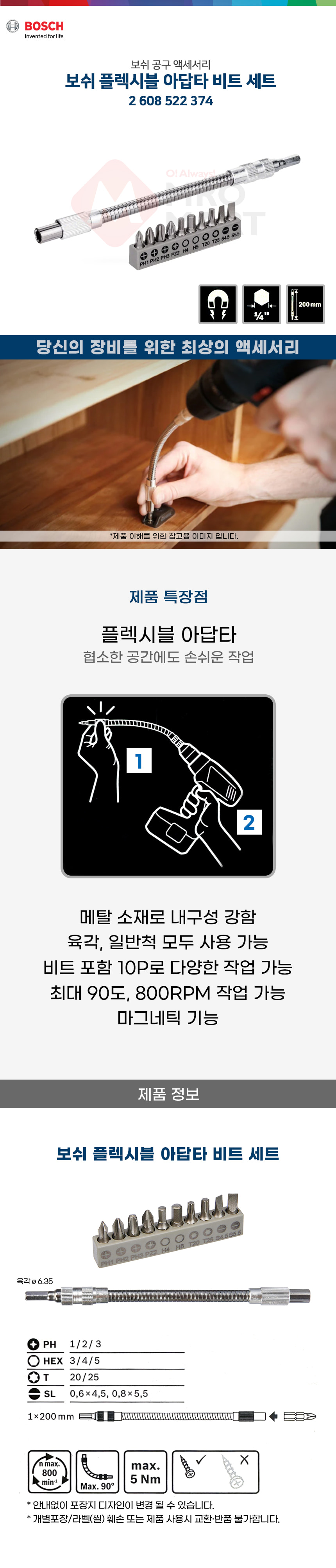 보쉬 플렉시블 아답타 비트 세트 11p 2608522374 코너 드릴 코브라 비트 90도