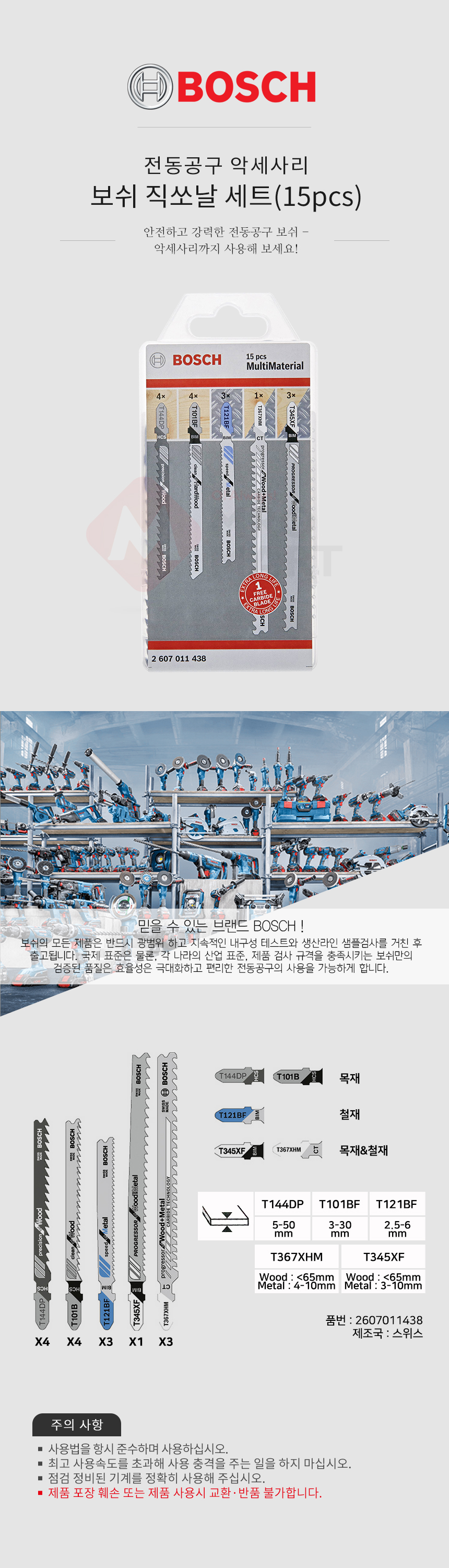 보쉬 직쏘날 15pcs 세트 2607011438 직소날 목재 철재 톱날 직쏘기