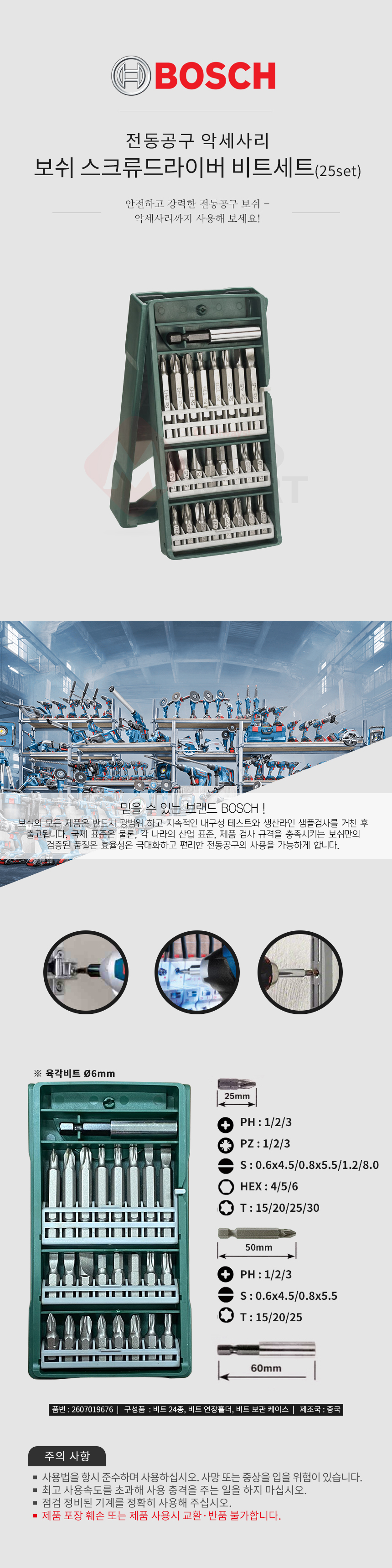 보쉬 스크류 드라이버 비트 세트 25set 2607019676