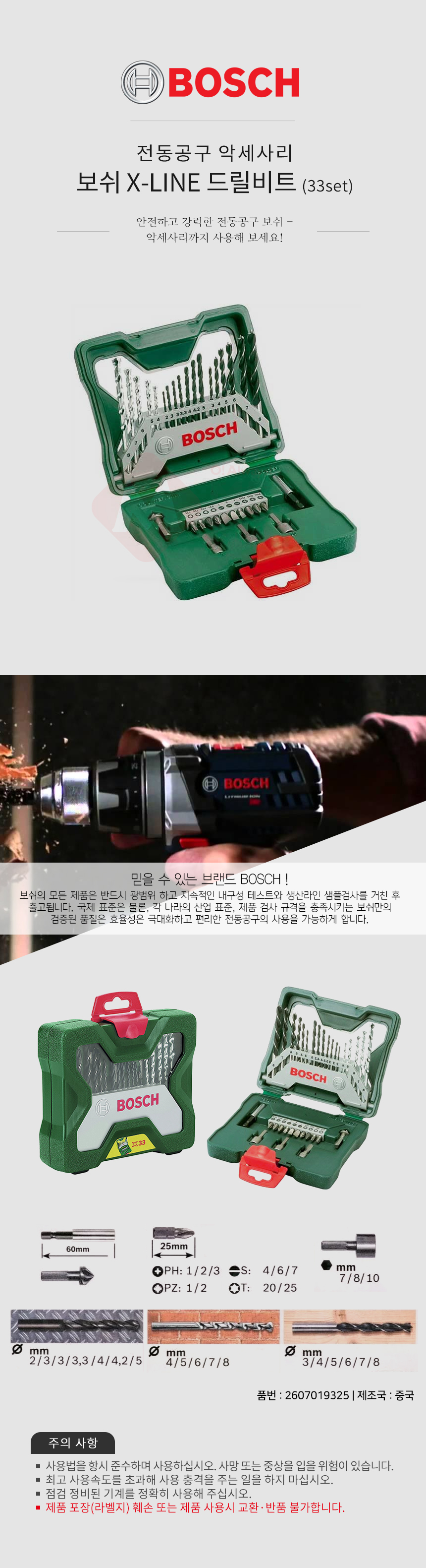 보쉬 X-LINE 드릴 비트 세트 33set 2607019325 목재 철재 석재 스크류 드라이버