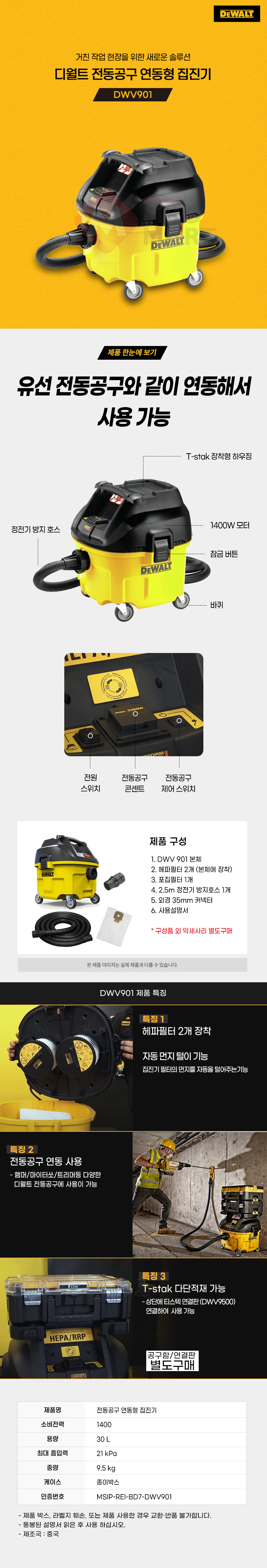 디월트 DWV901 진공 청소기 전동 공구 연동형 집진기 분진 가루 흡수