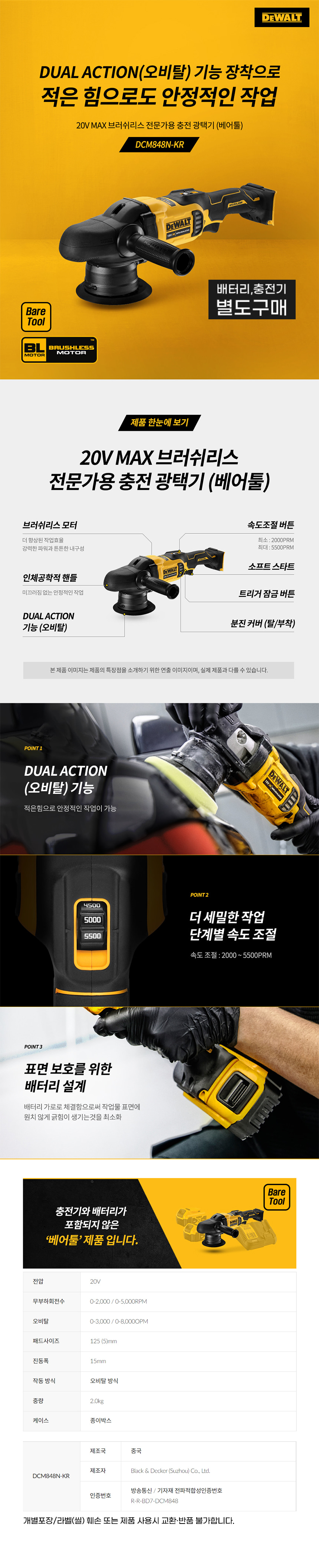 디월트 DCM848N 충전 전문가용 광택기 베어툴 20V